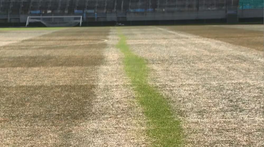 “Visualmente, a gente não tem o verde usual. Mas o que a gente consegue assegurar é que, para o gramado, não se observa, se afere, pela questão estética. A gente afere por parâmetros técnicos, que são a atração, umidade, compactação e resistência do gramado”.