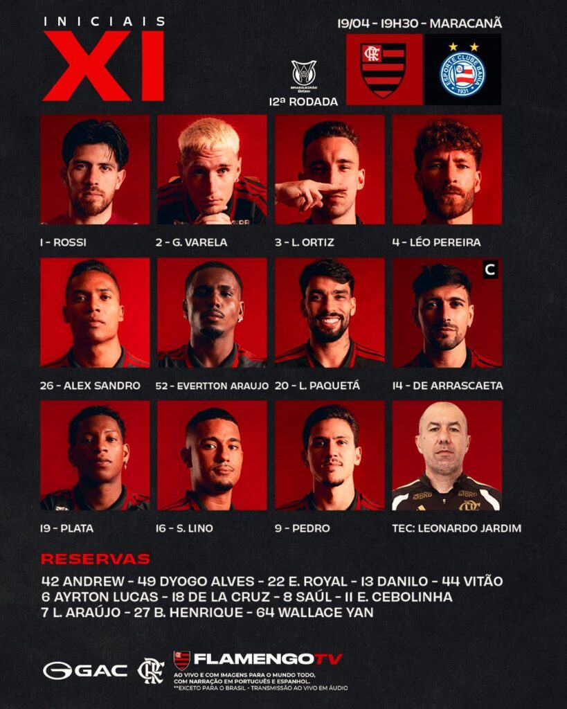 O técnico Leonardo Jardim manteve o mistério até o limite, especialmente por conta das suspensões de Pulgar e Carrascal pelo STJD. O comandante rubro-negro buscou alternativas no elenco para manter a intensidade ofensiva contra o Bahia de Everton Ribeiro.