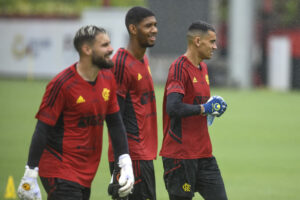 Aquecimento de goleiro do Flamengo viraliza e assusta torcedores nas redes sociais; veja vídeo